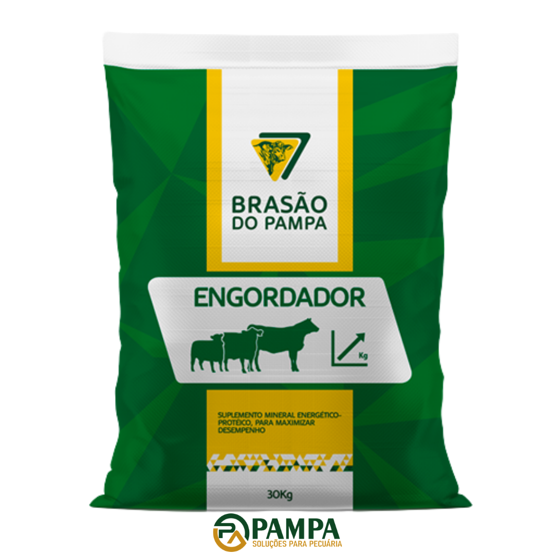 O Engordador Brasão do Pampa é um suplemento energético de alta eficiência, desenvolvido para maximizar o ganho de peso de bovinos em pastagens de alta qualidade.